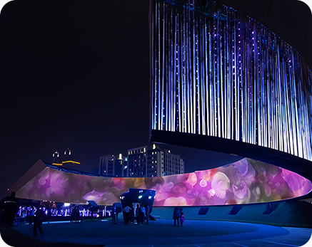 數(shù)字信息時(shí)代,華竣數(shù)創(chuàng)運(yùn)用燈光秀、超清視頻、特種影院等新媒體視覺藝術(shù)的聲光影電炫酷效果調(diào)動(dòng)觀者的所有感官全身心參與展廳視聽體驗(yàn),享受沉浸式心流狀態(tài)。